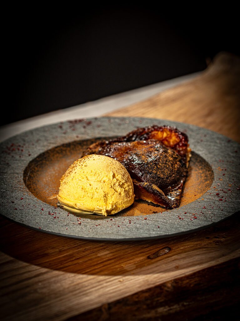 Po wyjęciu z piekarnika ostrożnie obróć patelnię i przełóż ciasto na deskę/ talerz tak, aby jabłka były na wierzchu, a tarta na spodzie. Uważaj, bo to jest gorące.