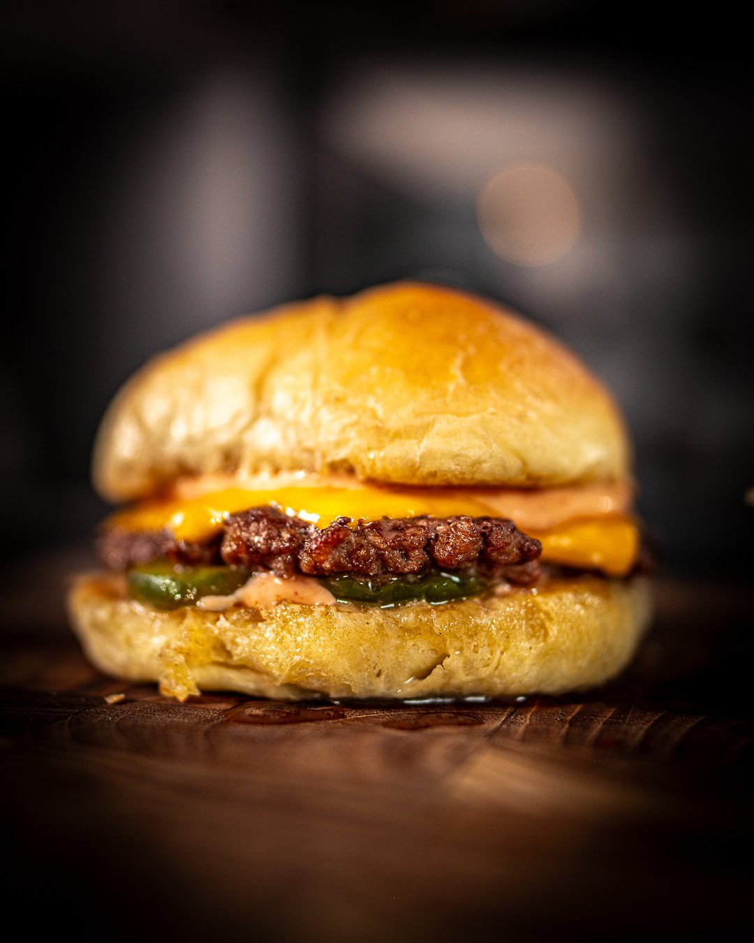 - 80 g wołowiny 80/20 lub 75/25 (proporcje chudej do tłustej części) uformowane w kulkę (jeśli podwójny to 2 kulki)